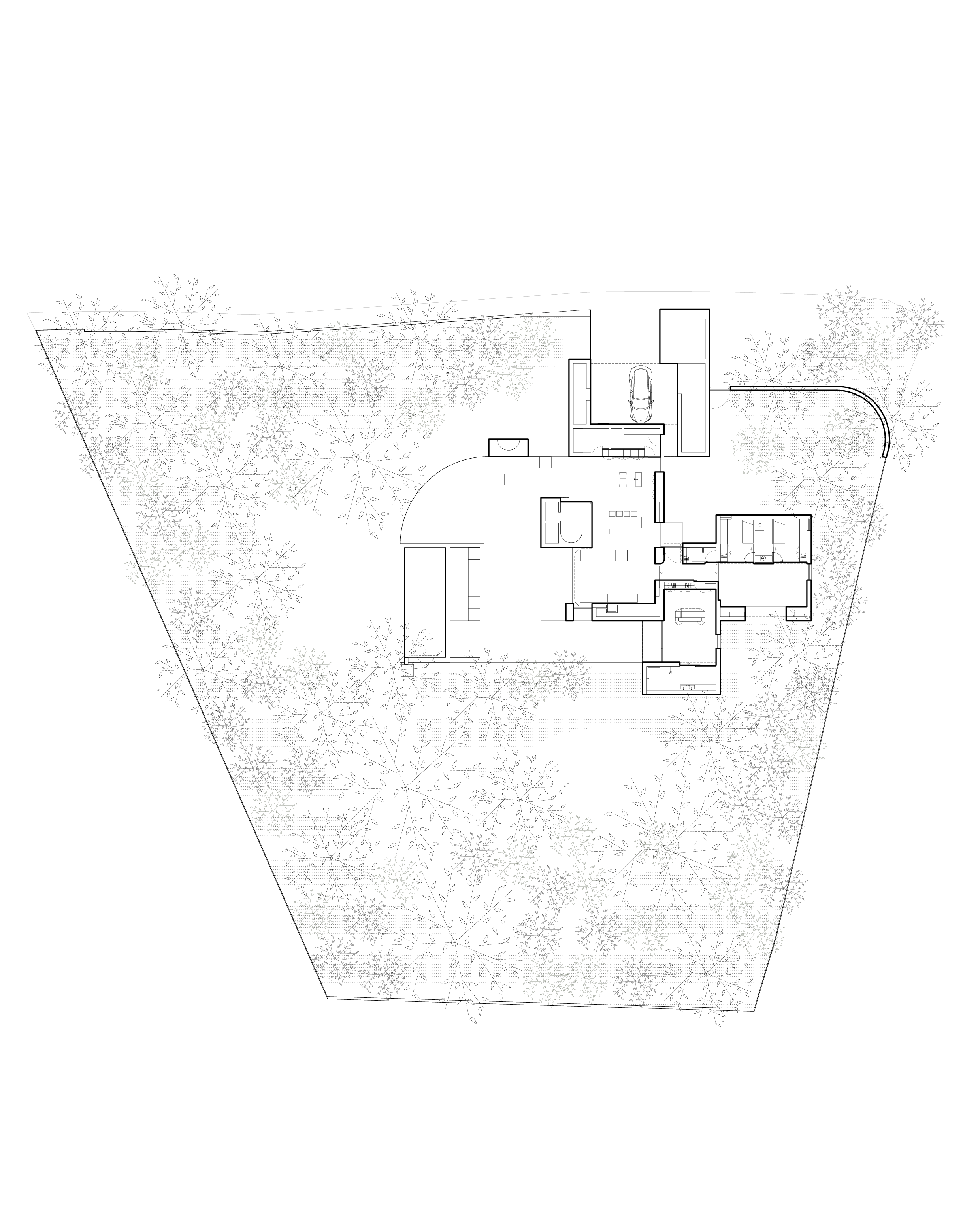 The shape, besides defining the limit of the terrain, is characterized by a game of advances and retreats that allow the optimization of the solar exposure and also provide various experiences of views over the terrain, looking for a massive language characterized by moments of shadow caused by the openings in the facades